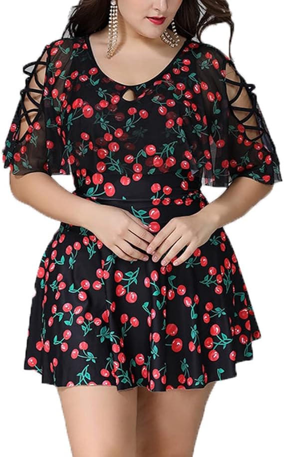 Wellwits Women S Plus Size Crisscross Flutter Sleeves Cherry Print Swimdress Amazon Ca Clothing Shoes Accessories